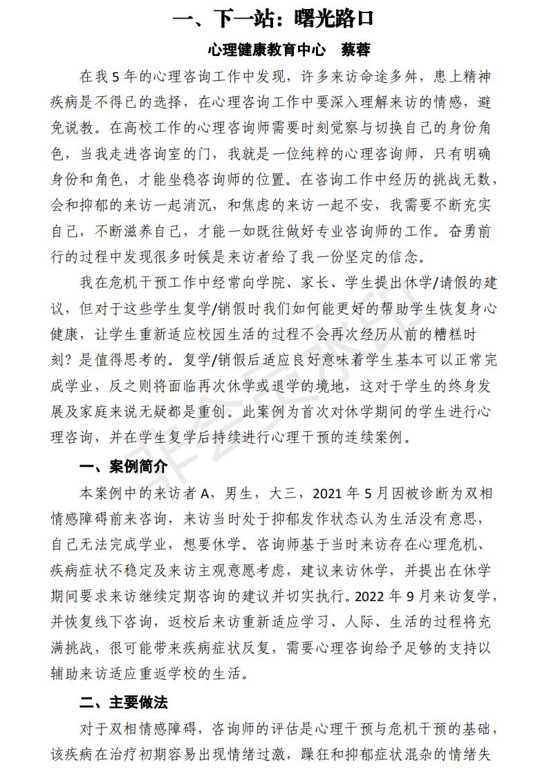 【2022年学生工作优秀案例】① 蔡蓉:下一站:曙光路口