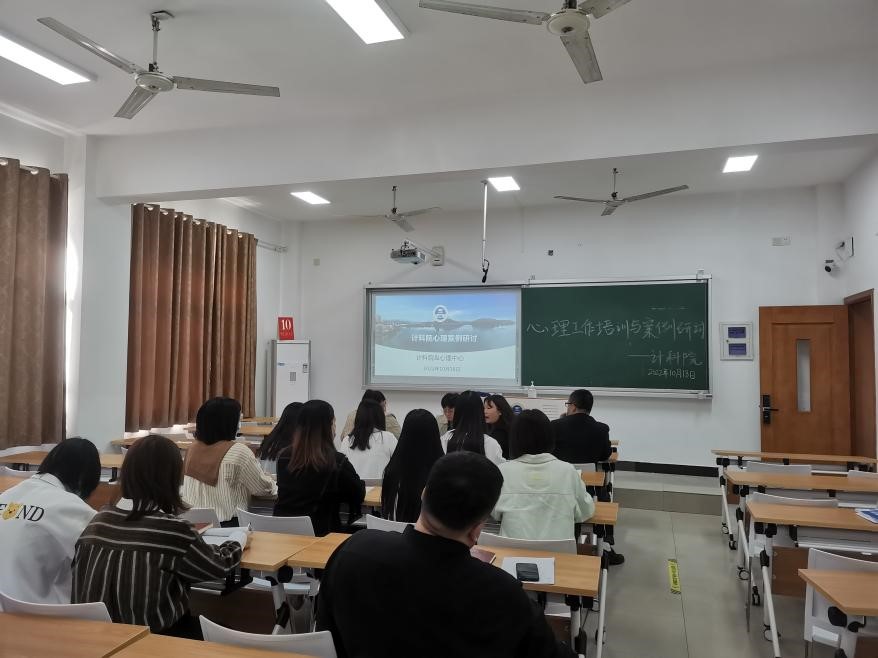 心理健康教育工作是高校学生思想政治工作的重要一环,旨在提高学生的心理健康水平,培养学生自尊自信、理性平和、乐观向上的健康心态。我院高度重视学生的心理健康工作,牢牢把握学生安全工作底线,努力提升辅导员老师的工作能力。2022年10月18日,我院10月份案例研讨工作及新辅导员心理培训工作在格物楼105教室举行,此次活动邀请到心理中心蔡蓉老师,我院党总支书记史珺宇及全体辅导员参加。