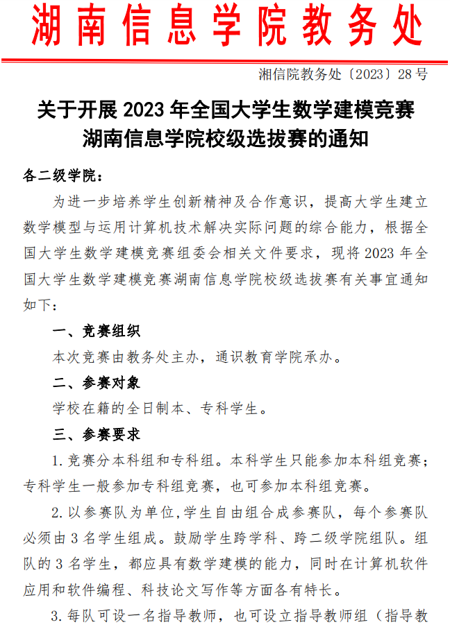 附件:湖南信息学院2023年数学建模竞赛报名表.docx