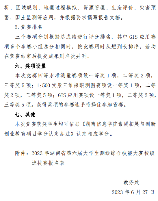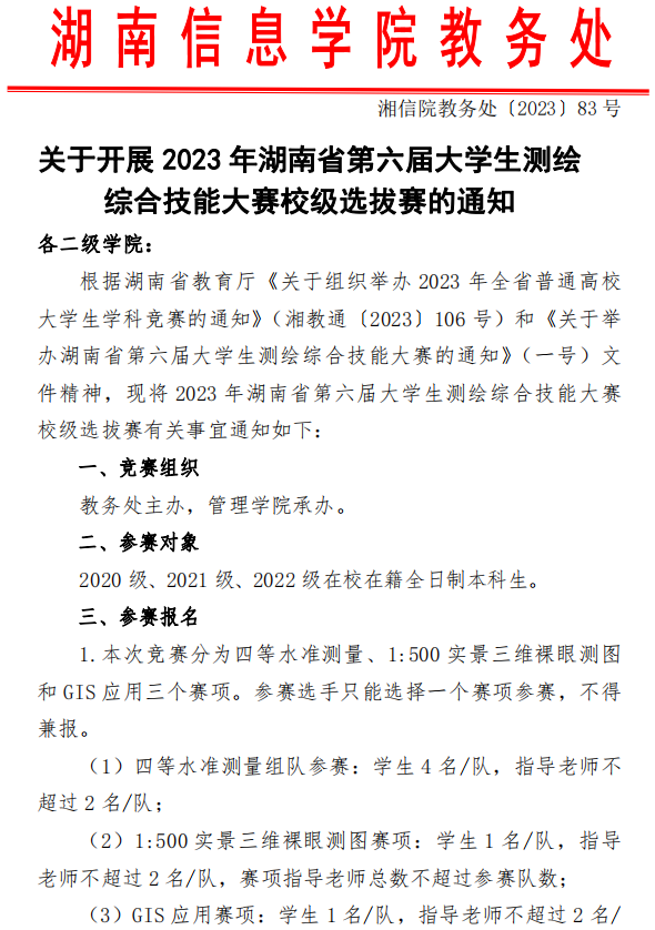 2.湘信院教务处〔2023〕83号:关于开展2023年湖南省第六届大学生测绘综合技能大赛校级选拔赛的通知.pdf