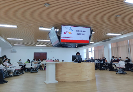 张晓娜老师首先从教与学的反思入手,引发大家的思考,对信息化教学进行概述,向老师们推荐了一系列可用的信息化教学软件,着重介绍了超星学习通平台的使用。其次,从竞赛角度进行信息化教学思路与经验分享,主要从课程简介、课程建设、教学应用、教学效果及教学展示五部分展开,对平台使用到资源建设进行了详细的介绍。