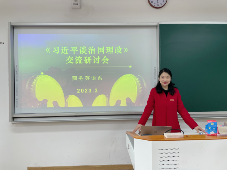 此次研讨为将《习近平谈治国理政》中的理论融入专业教学全过程和推进专业课程思政建设奠定基础。商务英语系全体教师受益匪浅,在今后实际教育教学工作中,定当用好思政的“味”,讲出育人的“道”,转变观念,更新内容,改革方法,真正做到把思想政治教育工作贯穿于教育教学全过程。