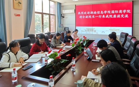 最后,胡令副院长对张院长团队的热情接待和无私分享表示衷心感谢,她表示,此次调研交流活动不仅为湖南信息学院国际商学院提供了宝贵的学习机会,为两个金融专业教师团队的发展指明了方向,为我校金融实训室的建设提供了有益的启示,这将大大助力我院进一步深化本科教育教学改革,提升应用型金融人才的培养质量。(文/刘知微 图/杨阳 一审/姜燕 二审/肖鹰 三审/胡令)