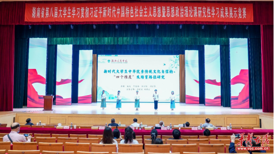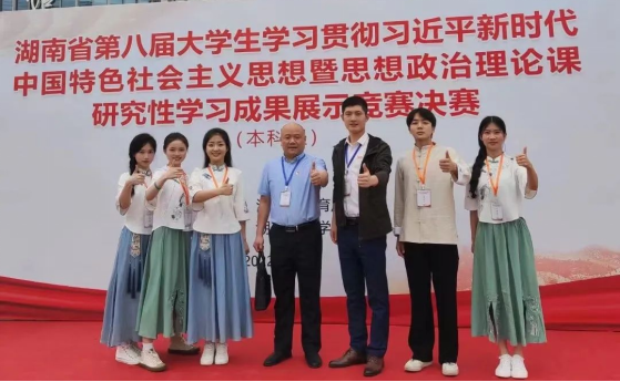 5月28日,湖南省第八届大学生学习贯彻习近平新时代中国特色社会主义思想暨思想政治理论课研究性学习成果展示竞赛决赛在学校塘湾湖大剧院举办。省委教育工委委员、省教育厅党组成员罗桂香,省教育工委宣传部长、思政处处长刘书华、副处长曾思亮等到比赛现场指导工作。我校马克思主义学院教师苏同欢、刘洪波带领的研究性学习小组斩获决赛特等奖,马克思主义学院张伟、颜福维、张俊哲三位老师带领的小组获得二等奖。