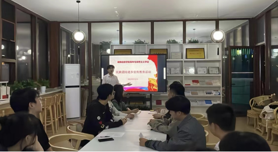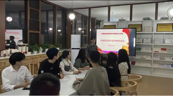 为全面落实中央民族工作会议精神,铸牢中华民族共同体意识,9月22日晚7点,湖南信息学院青年马克思主义学会在马克思主义学院教师活动交流中心举办了“民族团结进步宣传教育活动”,马克思主义学院院长助理颜福维、青年教师杨芳受邀参加,姚慧老师主持活动。