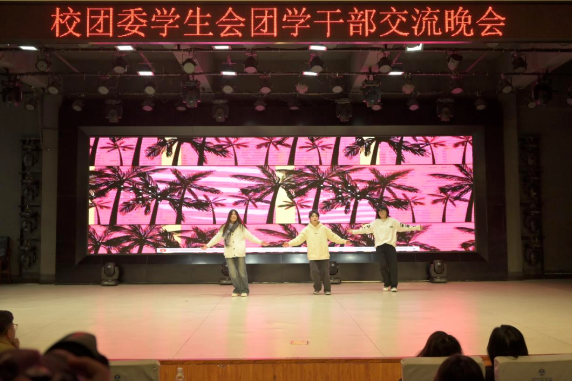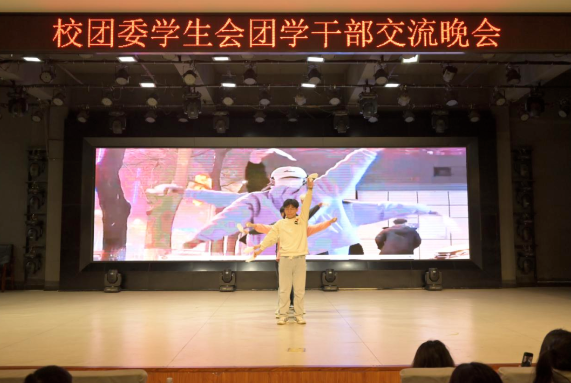 青春、舞台、灯光。由文娱部带来的舞蹈串烧一开场就引人注目、燃爆全场,揭开了团学干部交流晚会的神秘面纱!