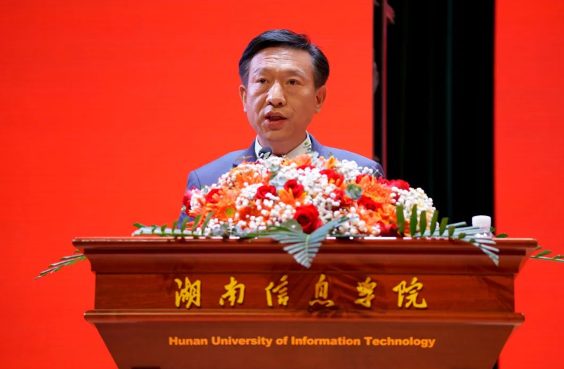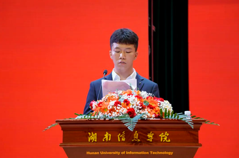 在湖南信息学院第七次学生代表大会第一次全体会议上,湖南信息学院第六届学生会主席团执行主席华笃嵘代表第六届学生会委员会及主席团向大会作《不忘初心跟党走,踔厉奋发新征程,团结带领广大湘信青年为加快建设“中国特色、世界先进水平技术大学”贡献青春力量》为主题的第六届学生会工作报告。