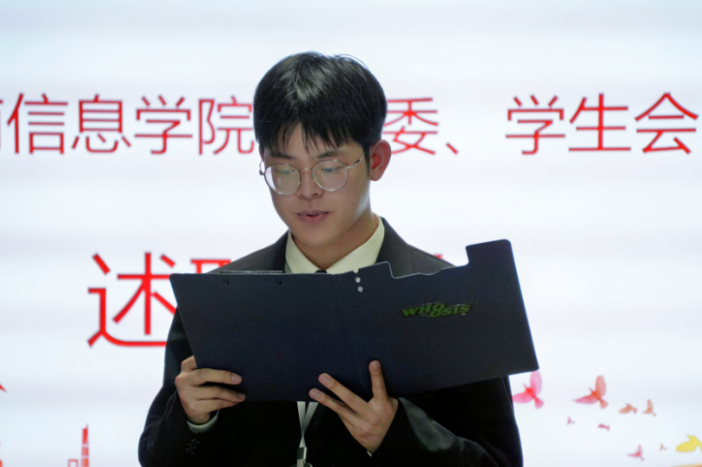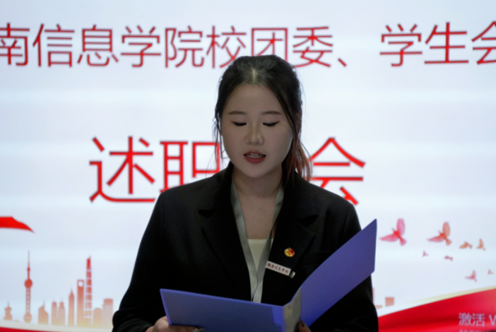 校学生会主席团成员以及各部门负责人作述职报告。他们分别汇报了任职学年所负责部门的工作内容、工作成果,并对工作中存在的问题和不足进行了认真的剖析和反思,制定了下一步工作计划。各部门一致认为,校学生会要始终跟随党的步伐,始终坚持以服务师生为宗旨,营造良好的校风学风,在生活与学习中以身作则,使湘信学子的风采得以充分展现。