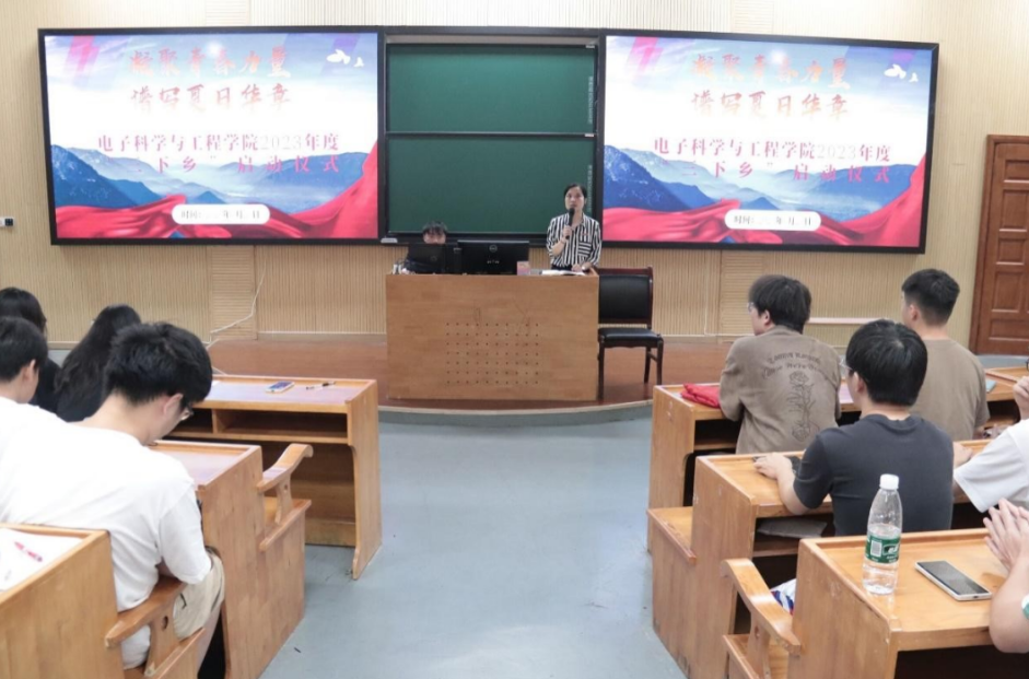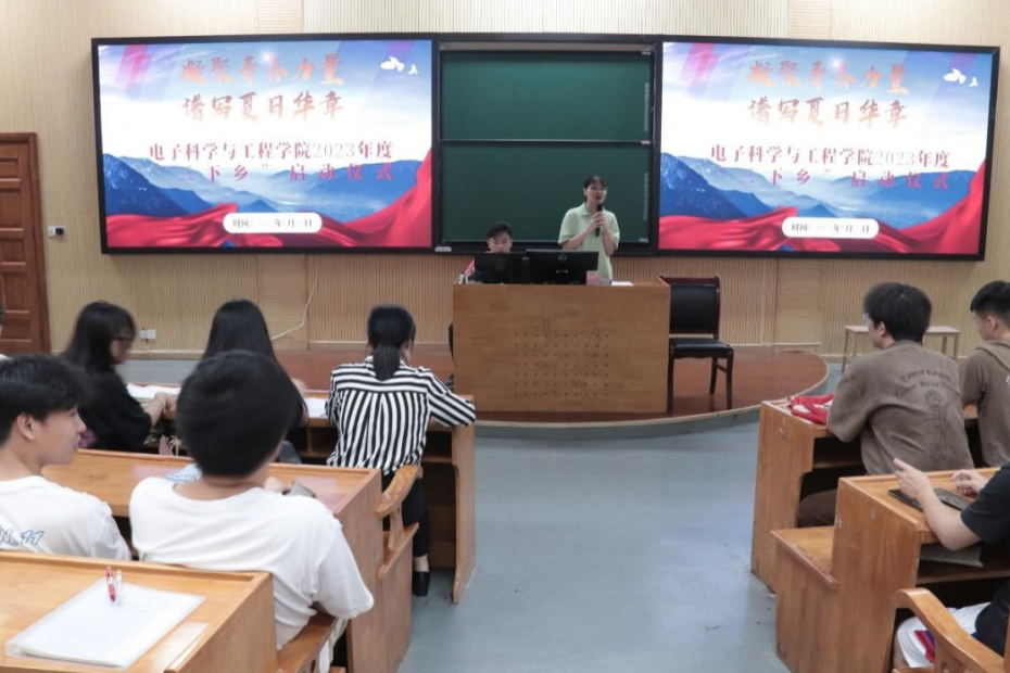 为深入贯彻习近平总书记关于青年工作的重要思想,鼓励青年学子积极投身于国家建设和发展的实践中,6月20日18时30分,电子科学与工程学院2023年暑期“三下乡”社会实践活动启动仪式在第一报告厅举行。仪式由分团委学生副书记刘惠宁主持。学院暑期实践团34支队伍逾300人参会。