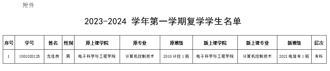 附件:2023-2024 学年第一学期复学学生名单