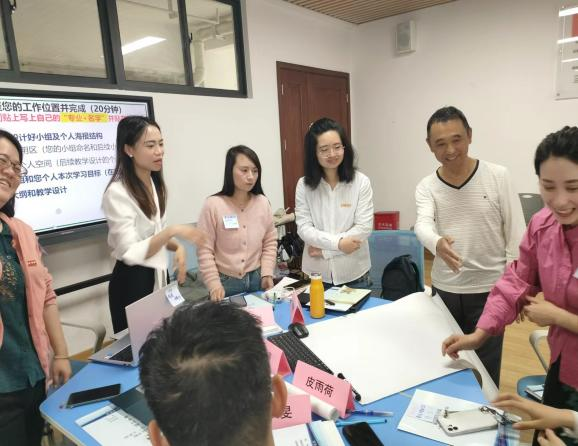 伴随着“栀子花开”的优美旋律,教务处刘处长和人事处徐处长进行了简短的开场动员,随即本次活动正式拉开帷幕。魏志方教授首先介绍了本次活动整体的学习背景、学习目标和学习要求,接下来开始了系列培训活动,并按照“理论-示范-实操”的基本步骤进行。参与培训的教师学员分为六个小组,由三位指导老师面对面指导。