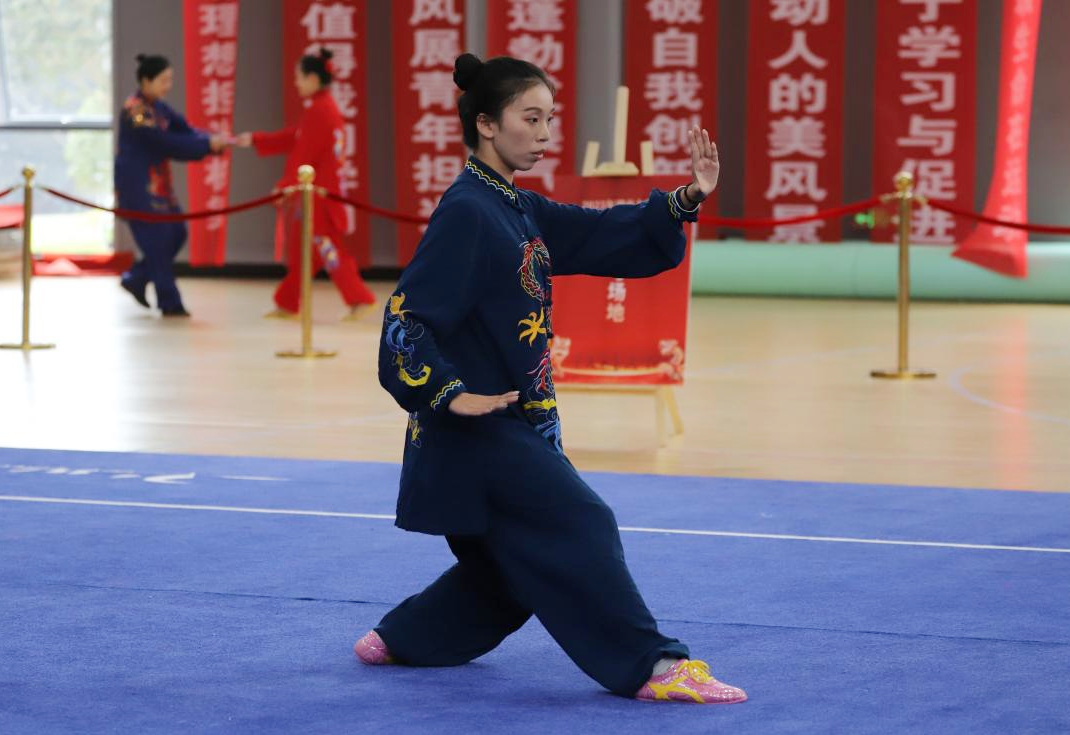 赛场上,各校参赛选手拳脚生风、器械相交,在紧张激烈的比拼中,既彰显了中华武术的深厚底蕴,也体现出当代大学生顽强拼搏、昂扬向上的精神风貌。