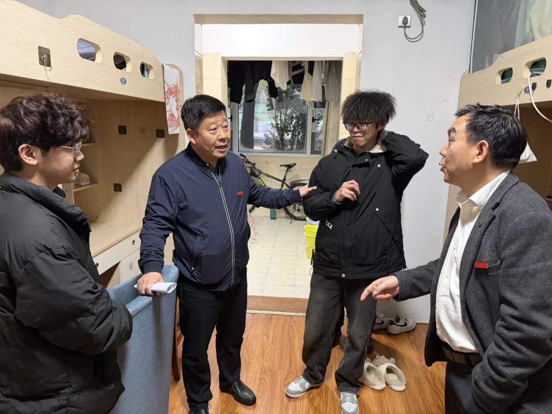 在与学生的交谈中,校领导们不仅关心生活起居,更关注他们的思想动态和学业规划。王校长为同学们的成长发展提出殷切期望。鼓励大家珍惜时光、深耕专业,在课堂学习中夯实基础,在实践活动中锤炼本领,以积极饱满的姿态迎接挑战。