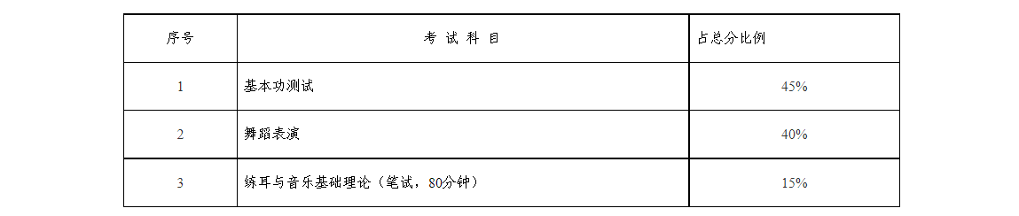 报考舞蹈表演专业的考生还须参加面试。舞蹈表演专业面试主要考查考生的形象、气质、身高等专业条件,要求:①五官端正,身材匀称,气质好;②男生身高不低于170cm,女生身高不低于160cm;③专业条件达到所报专业的规定要求。面试成绩只计合格与不合格,不计入省统考总分,作为报考专业录取的参考依据。