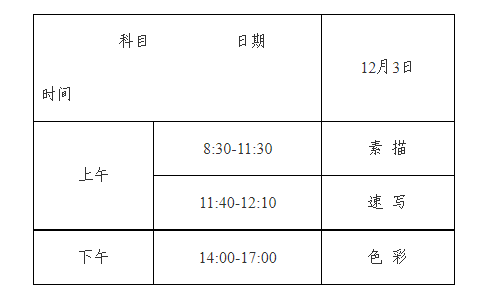 职高美术类考生直接参加普高美术类考试,考试内容、要求、时间及考点安排等与普高美术类相同,不再单独组织考试。