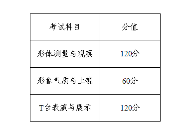 身高与形象50分、专业技能250分(演唱40分、台词70分、形体展示40分、表演100分),满分300分。