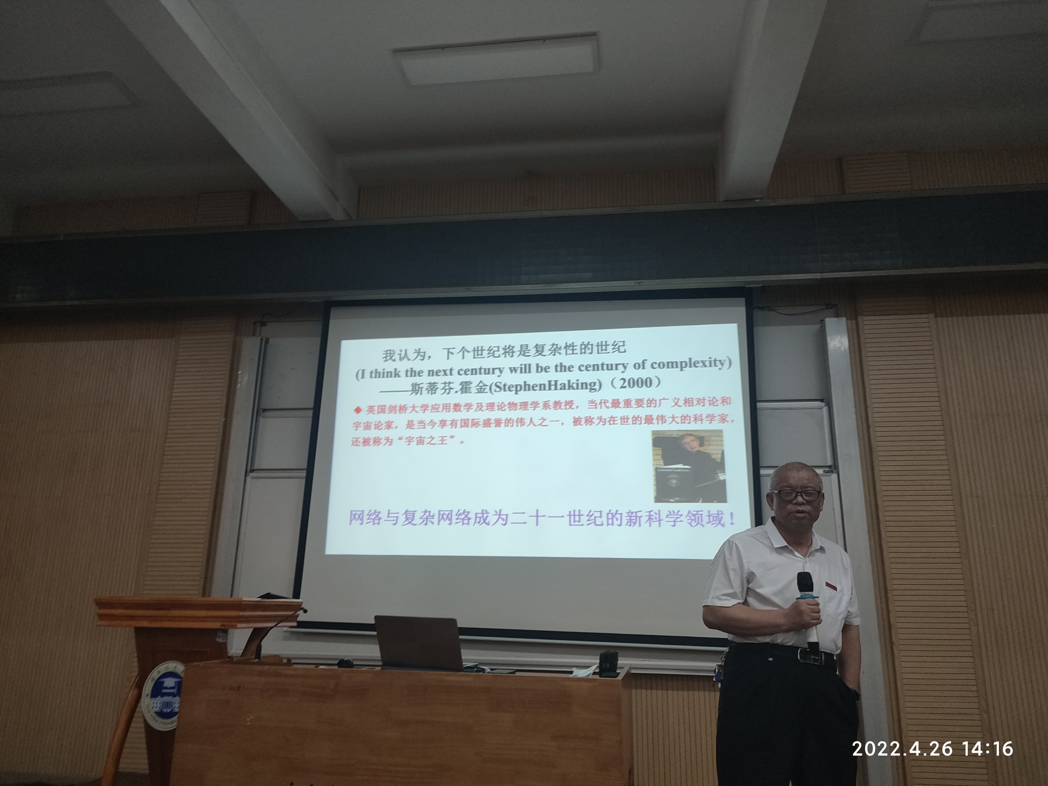 4月26日下午2点,计算机科学与工程学院在第三学术报告厅举办了“复杂网络研究”学术讲座,本次讲座由数据科学与大数据技术系戴小鹏教授主讲,学院副院长龚芝主持,近200名师生参加。