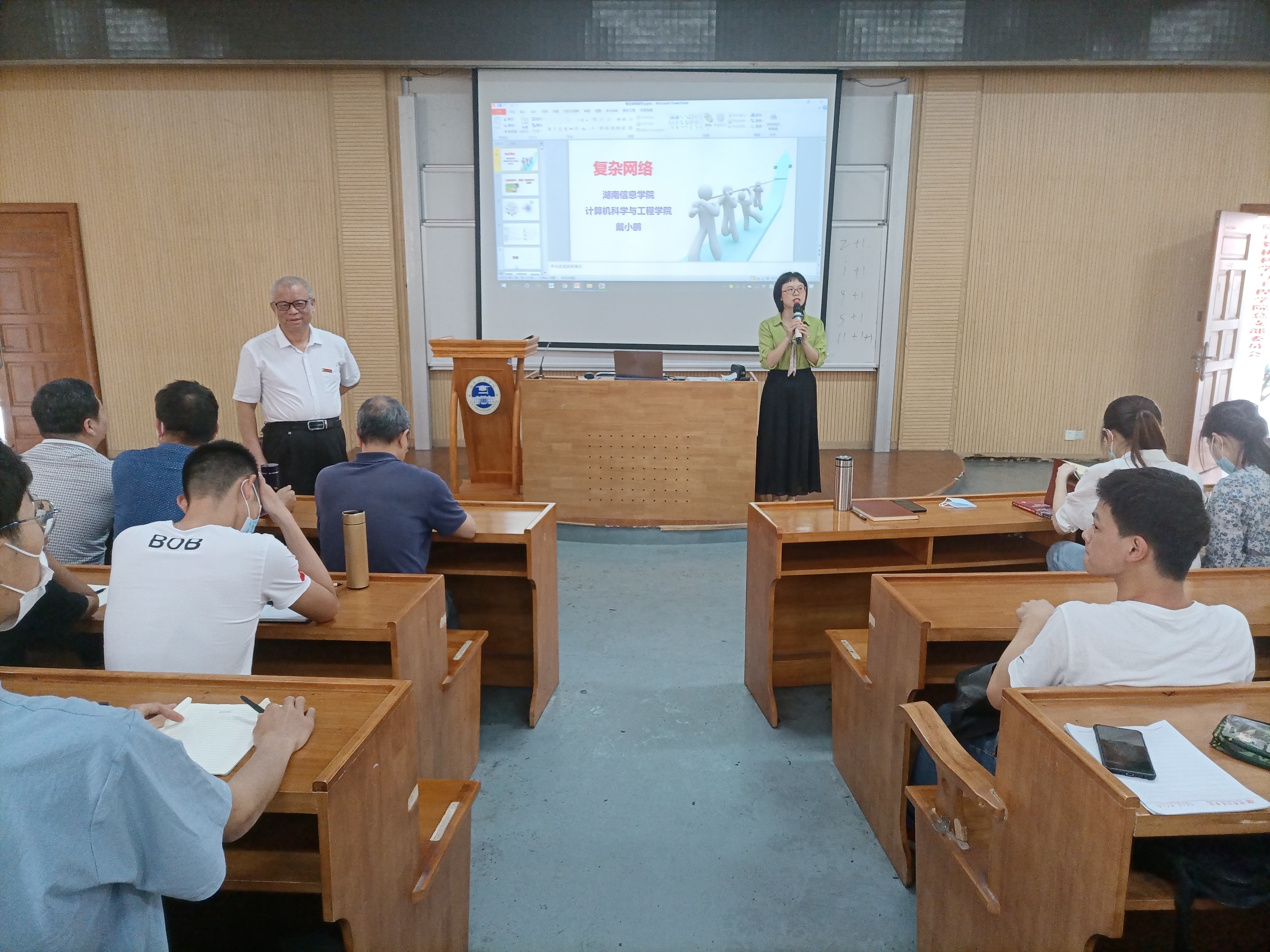 戴小鹏,教授,博士,硕士生导师,是湖南省计算机专业委员会理事,计算机科学与技术省级双一流专业带头人,主持国家863项目、国家级重点、省级项目近30项,发表有130多篇文章,获得发明专利2项,计算机软件著作权20多项,主要研究领域为人工高智能、复杂网路、智能信息处理。戴教授在报告中介绍了他的学术成果和科研经验,并针对“为什么要研究复杂网络”、“复杂网络的研究简史”、“复杂网络的研究内容”和“复杂网络的研究分享”等方面展开详细讲解。戴教授风趣幽默、由浅入深,大大开阔了我们的视眼,师生受益匪浅。最后,他与我院师生针对学术和科研问题做了深入的探讨和交流。