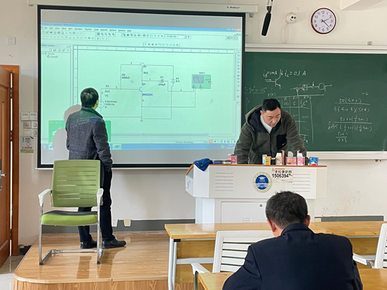 首先是陈钢老师的模拟电子技术课程,陈钢老师善于利用各类信息化技术手段,寓教于学。教学能力提升活动结束后,王辉教授和陈钢老师就课程内容相关的教学内容设计进行了讨论,并对这堂课提出了详实的修改意见,讨论如何让学生更快融入课堂,更好的理解课程内容,切实地将课程教学主要重难点一一击破,真正地做到学而思,思而通。