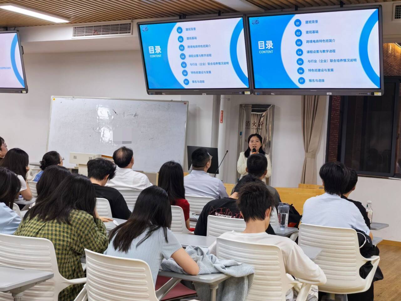 接着,国贸系主任周雅颂从建班背景、建班基础、跨境电商特色班简介、课程设置与教学进程等七个方面对特色班的建设规划进行了全景式解读,深入阐述了特色班的建设蓝图,使同学们对跨境电商特色班的培养理念和实施路径有了清晰认知,进一步激发了同学们的报读意愿。