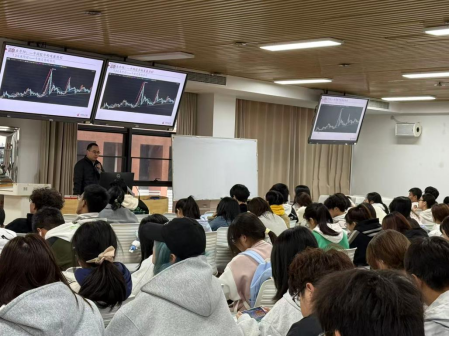 首先龙超副总经理以中国股市的发展历程为切入点,梳理了从1984年“中国第一股”飞乐音响发行,到1986年静安证券业务部正式营业、再到1990年沪市深市相继营业的关键节点,清晰展现了中国资本市场从“小柜台”到“大市场”的蜕变过程,让在场师生对证券行业发展历史有了直观的认知。