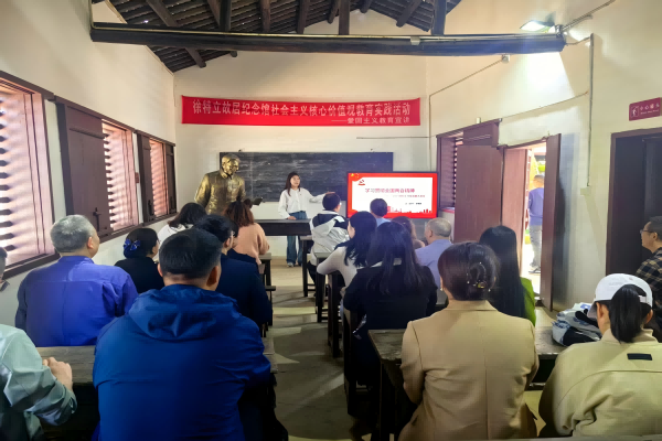 活动高潮在研学基地开展的“2025年两会精神宣讲”专题党课,马克思主义学院党总支书记、副院长罗斯静以《教育强国建设中的思政担当》为题,透过2025政府工作报告要点速览,将两会提出的"新质生产力人才培养"、"教育数字化战略"等热点,与两位教育先贤的实践智慧相结合,引发如何将两会精神转化为思政课教学增量的现场研讨。青年党员教师罗旺感慨:“在徐特立起草教育法规的故地学习两会教育部署,历史与现实的对话让我们找到了政策落地的着力点”。