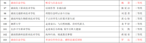 本届赛事覆盖全省110所高校,共有2200余件作品参赛。经学校申报、网络展示、专家评审等环节,学校参赛作品共获得奖项23项,其中我院参赛教师许正宜、罗达等5名教师荣获教师组二等奖,梁毅娜、张昕辉等6名教师荣获教师组二等奖。此外,我院刘洪波、颜福维等11名教师荣获“优秀指导教师”称号。在教师认真指导、学生积极配合之下,学生组收获颇丰。姚慧、张兴发和刘洪波老师指导的参赛作品《百年犹未老 世纪正青春》获得学生组特等奖,同时,其他参赛作品还荣获学生组一等奖1项、二等奖2项、三等奖7项,学校也获评“优秀组织奖”。