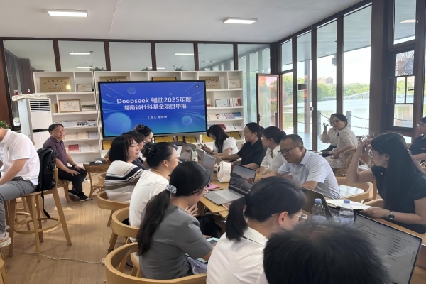 廖教授结合其深厚的学术功底与丰富的指导经验,从指导思想、申报要求、选题指南、申报规范及上交材料五个关键方面,为与会教师进行了全面、细致的讲解。他特别演示了如何运用Deepseek等人工智能工具高效梳理研究脉络、优化申报书内容,为老师们提供了兼具前瞻性与实用性的指导。