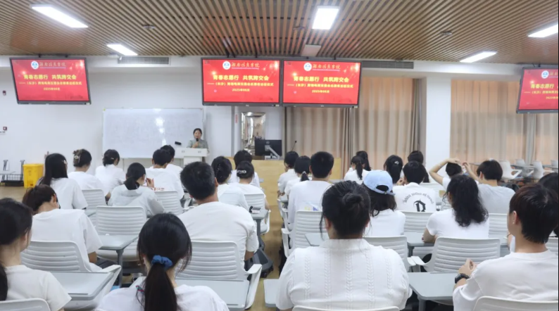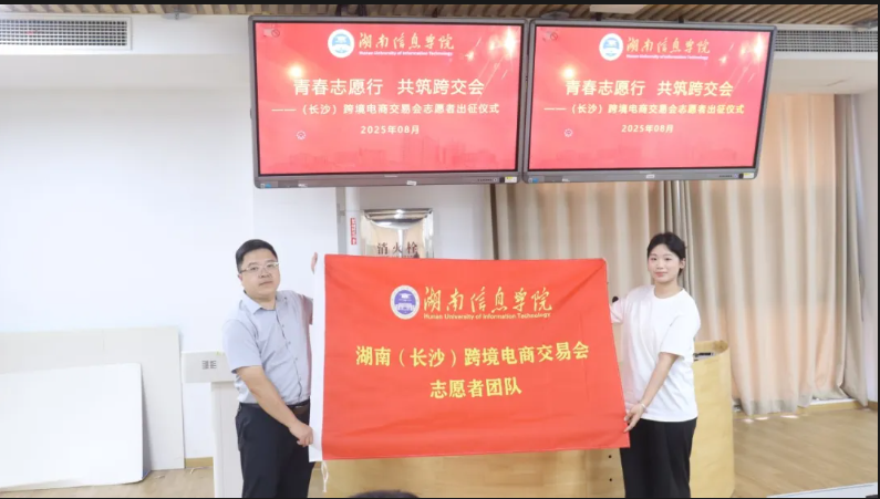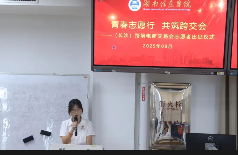 2025年8月28日中午,国际商学院在信息中心楼517学术报告厅隆重举行2025湖南(长沙)跨境电商交易会志愿者出征仪式。国际商学院党总支书记陈加新、副院长杨璐嘉、国贸系主任周雅颂、商英系主任方雷毅等领导出席,全体志愿者共同参加大会仪式。仪式由学院党总支副书记陈春亚主持。