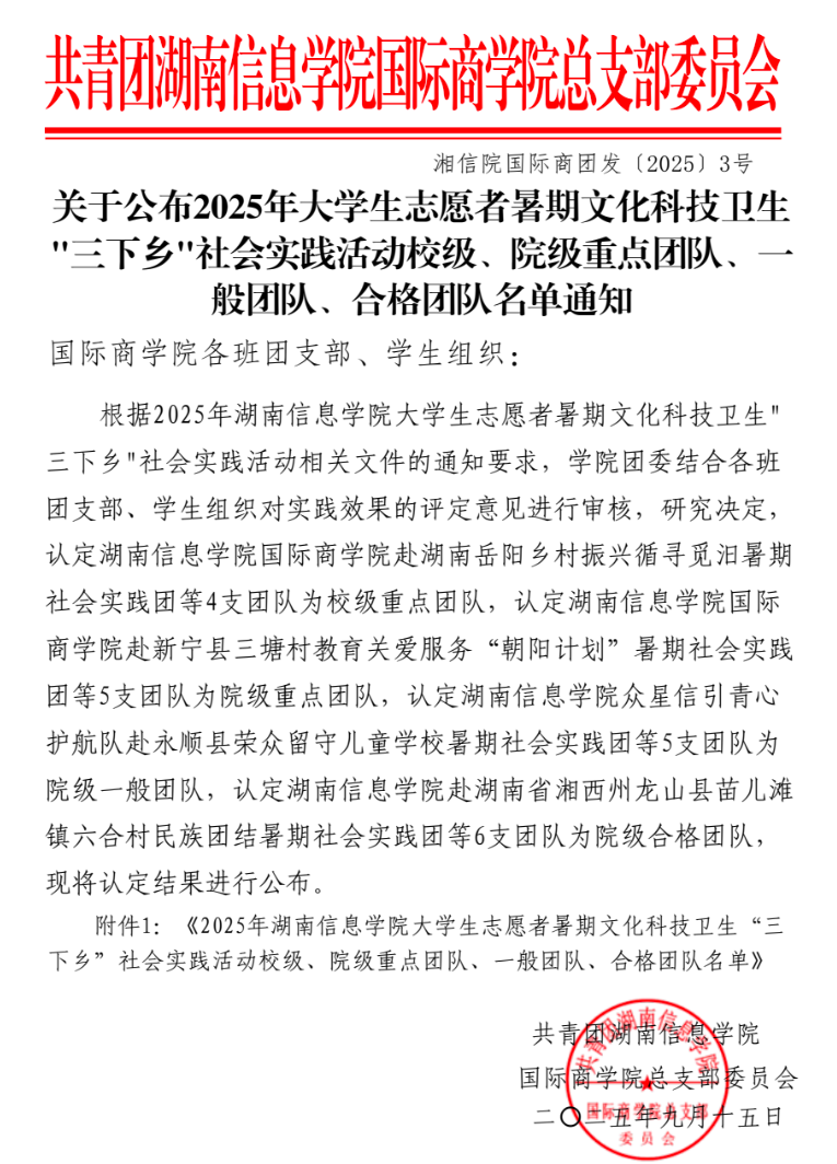 为引导广大青年学子深度融入社会实践大课堂,在实践磨砺中受教育、长才干、作贡献,于观察体悟中学党史、强信念、跟党走,奋力成长为担当民族复兴大任的时代新人,国际商学院于2025年9月11日18 点在信息中心楼408教室隆重举行暑期“三下乡”社会实践汇报评选。