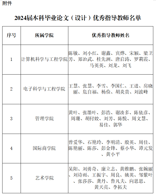 附件:2024届本科毕业论文(设计)优秀指导教师名单