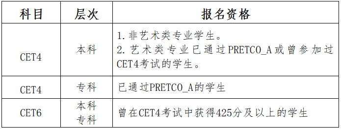 1.四六级不能同时报名,已通过CET4考试的学生不再重复报名同级别考试。