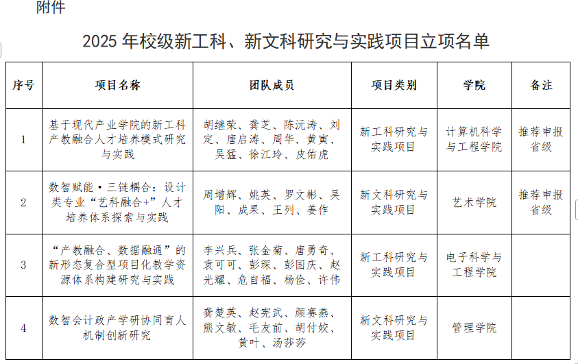 附件:2025年校级新工科、新文科研究与实践项目立项名单