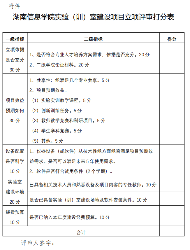 附件:湖南信息学院实验(训)室建设项目立项评审打分表