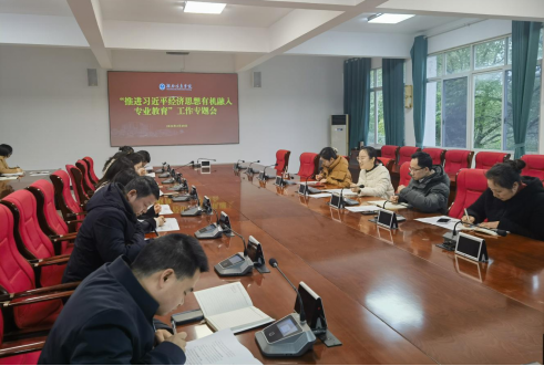 为深入贯彻落实教育部及湖南省教育厅关于推进习近平经济思想有机融入专业教育的相关通知精神,2月28日下午,学校教务处在求实楼二楼会议室组织召开“推进习近平经济思想有机融入专业教育”工作专题会。会议旨在研究制定学校具体实施方案,确保党的创新理论在人才培养全过程中落地生根。教务处处长、副处长及相关二级学院院长、教学副院长、系主任参加会议。会议由教务处副处长毛宁主持。
