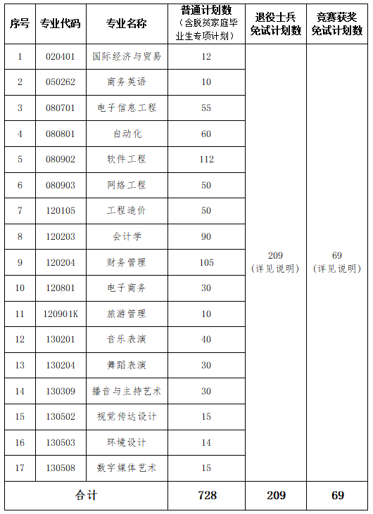 根据湖南省教育厅、湖南省教育考试院相关文件精神,结合我校办学实际及省教育厅下达的专升本招生计划数,现将我校2026年普通高等学校专升本各专业招生计划予以公布。我校本年度专升本总招生计划共计1006名,其中普通招生计划(含脱贫家庭毕业生专项计划)728名、退役大学生士兵免试招生计划209名、竞赛获奖学生免试招生计划69名。各专业具体招生计划详见下表: