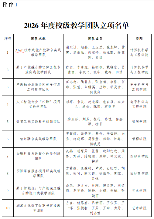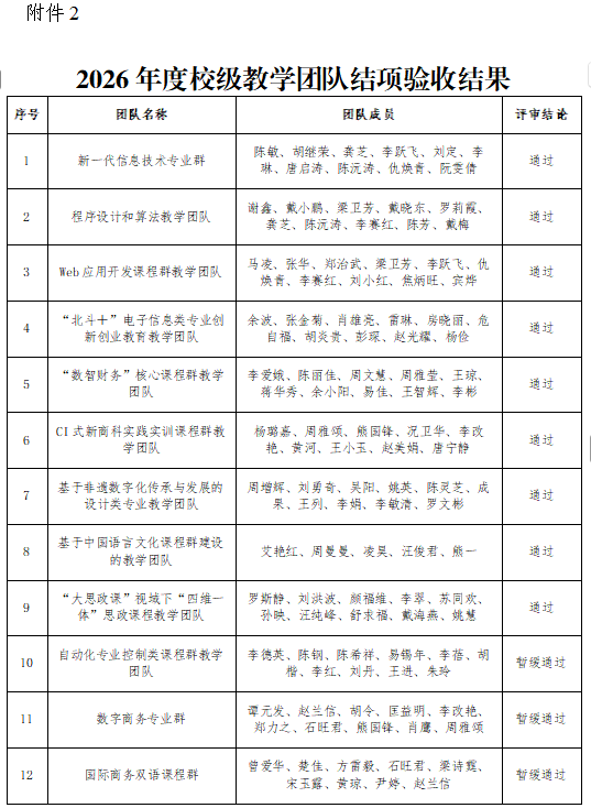 关于公布2026年度校级教学团队申报立项和结项验收结果的通知