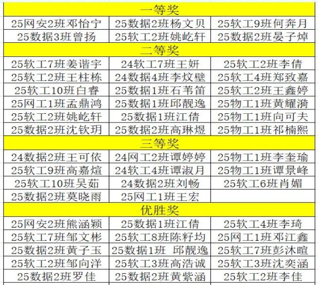 公示期为2025年12月17日至2025年12月20日,共计3个工作日。公示期间,如对获奖名单有异议,请以书面形式(需注明异议人姓名、班级、联系方式及具体异议理由)提交至计科院分团委生活权益部。逾期未提出异议的,将视为对获奖结果无异议,我院将依据公示结果为获奖同学颁发荣誉证书及相应奖励。